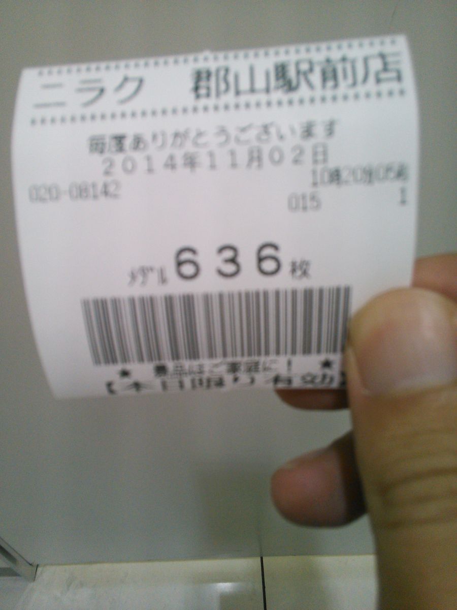 2014 秋、ふらふらとパチンコ打ちながら行ってきた。週末を利用して土曜に郡山、日曜福島だったはず。郡山は福島だと駅前繁華街が大きい方な気がする。朝適当にパチスロ打ってちょい浮きだったようす。枚数的にジャグ即止め系じゃないからまどマギかな。