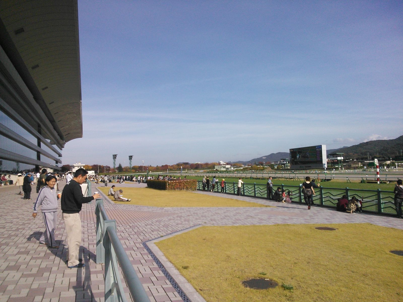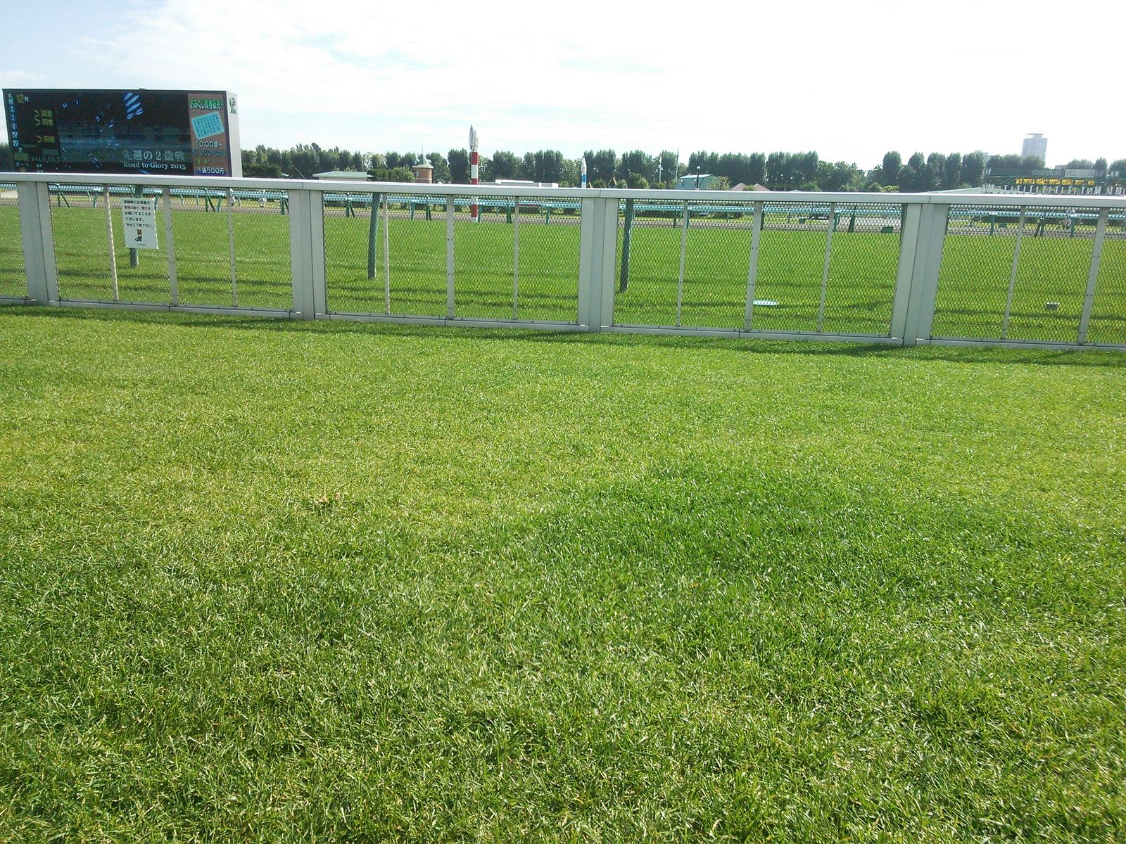 そしてこの芝の青さというか綺麗さというか、アメリカでいうところの隣の芝生は青いとはまさにこのこと。歩くとわかるけど、弾力というかちょっとふわふわする。スタンド側の客が入るところの芝もコースのと同じだとしたら洋芝なんかな。たしかにほかの競馬場とは一線を画す踏みごたえ。