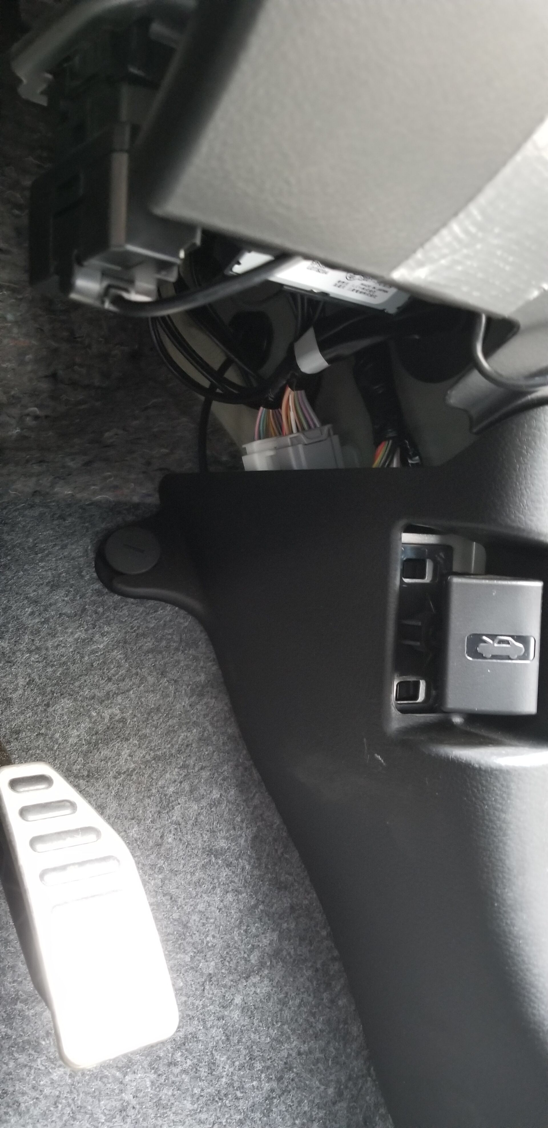 まず OBD2 端子の位置を確認する。HA36S 2 型の場合は運転席のアクセルペダルの上あたり。