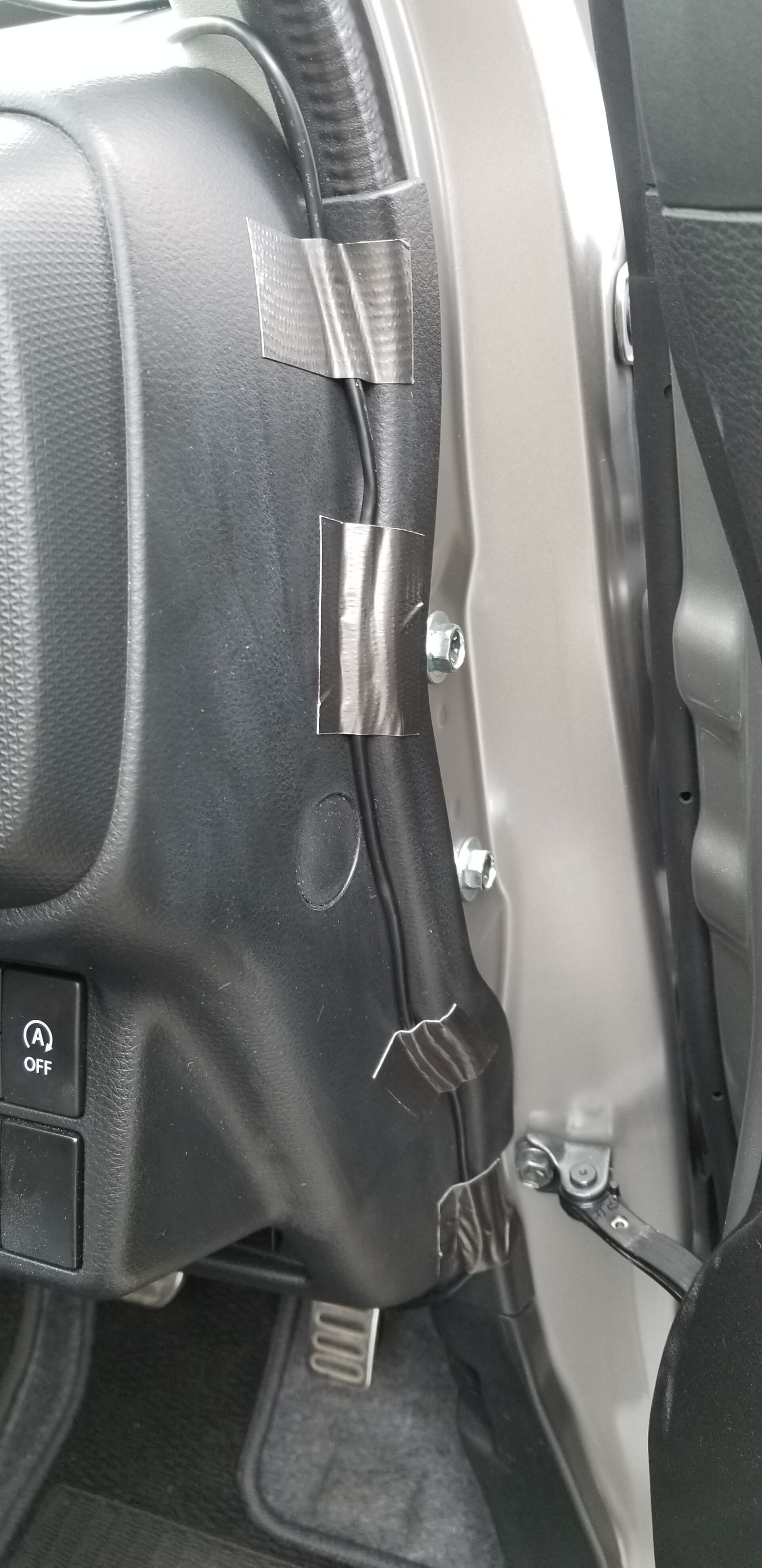 本当は水温と油温がとれればいいのだけど、HA36S だと油温は OBD にないというかセンサー自体ついてない?のかな。配線こんなんにしちゃったけど車検でなんか言われるかな。DIY 感溢れすぎ。