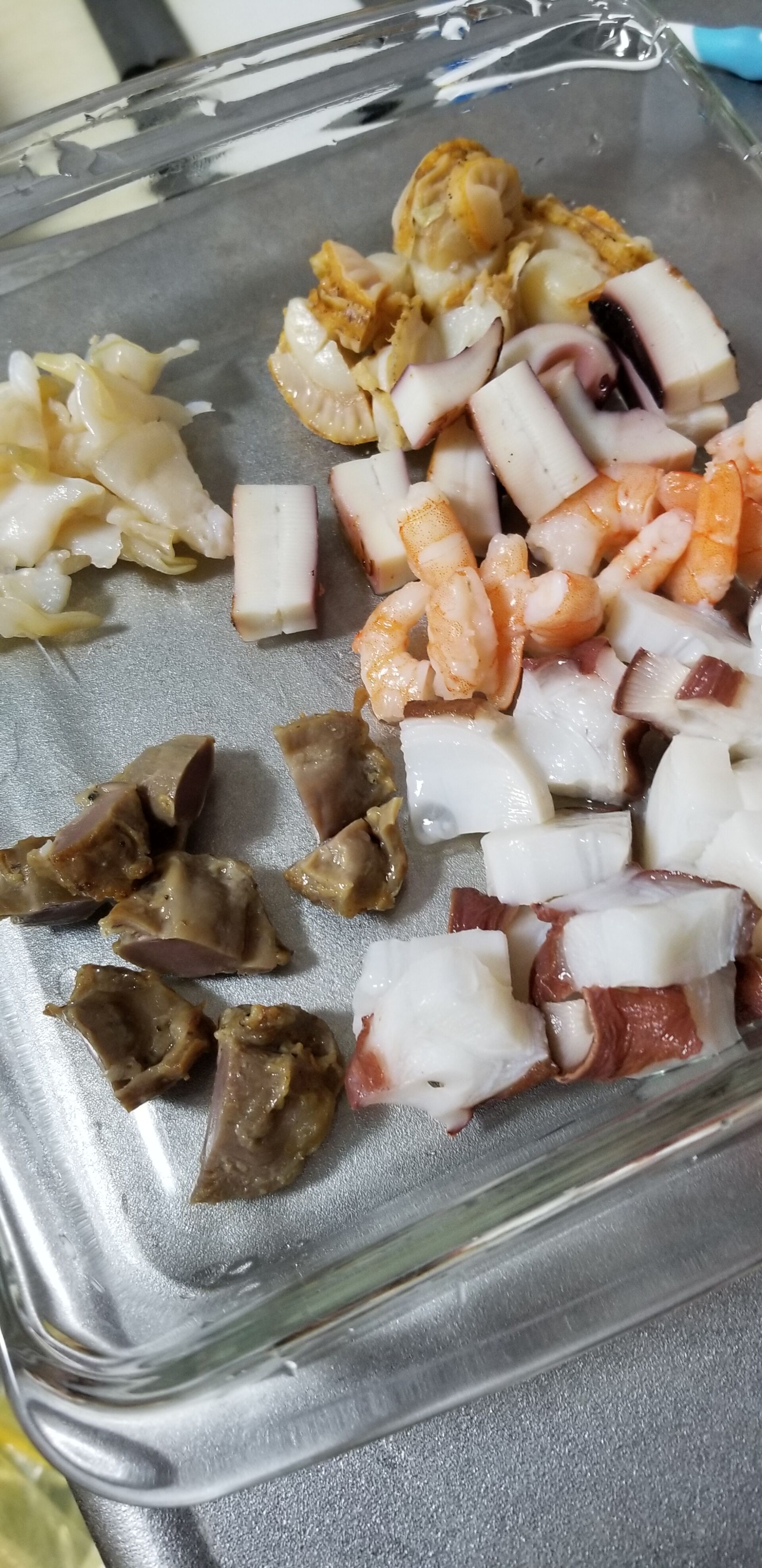 いか・・・柔らかくいまいち。今回は味付き加熱済みを使ったが、過去に生いかでも試してやはりいまいち。